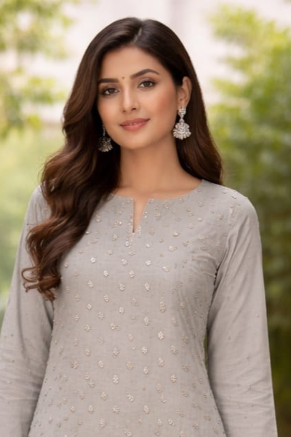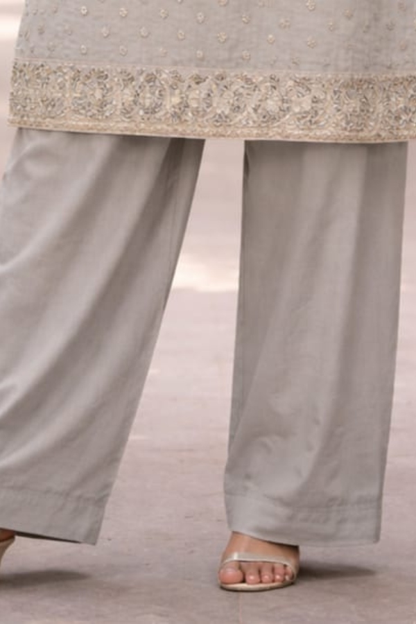 The Silver Organza/Viscose 3PC combines sheer elegance with soft comfort. Ideal for special occasions.
