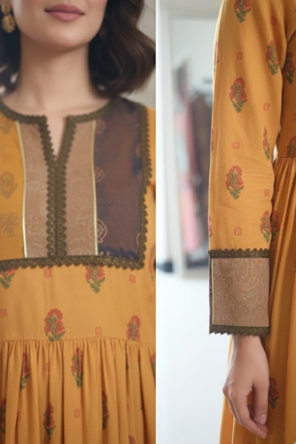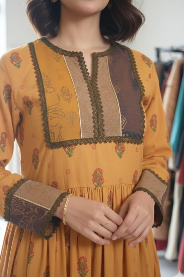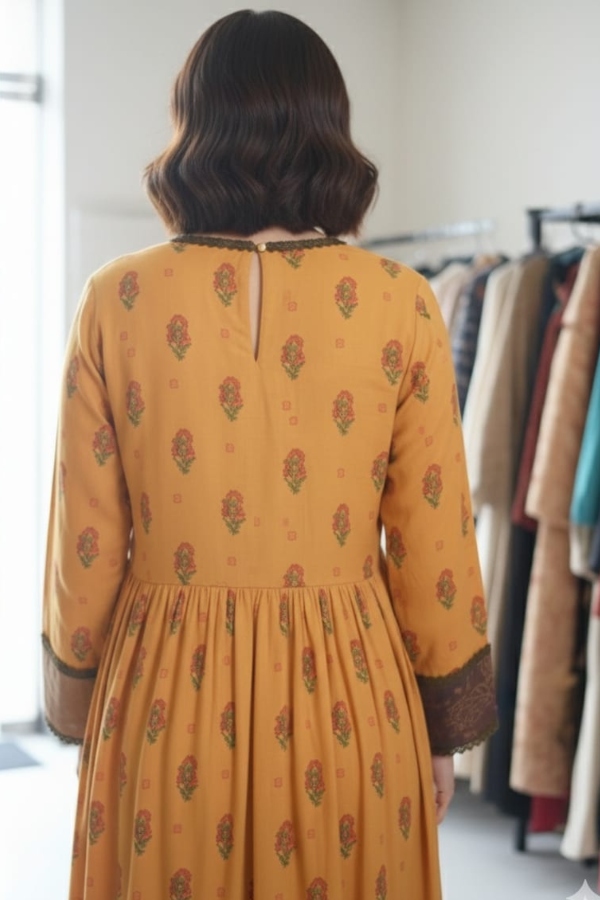 The Yellow Lawn Long Frock offers breathable comfort with a flattering long silhouette.